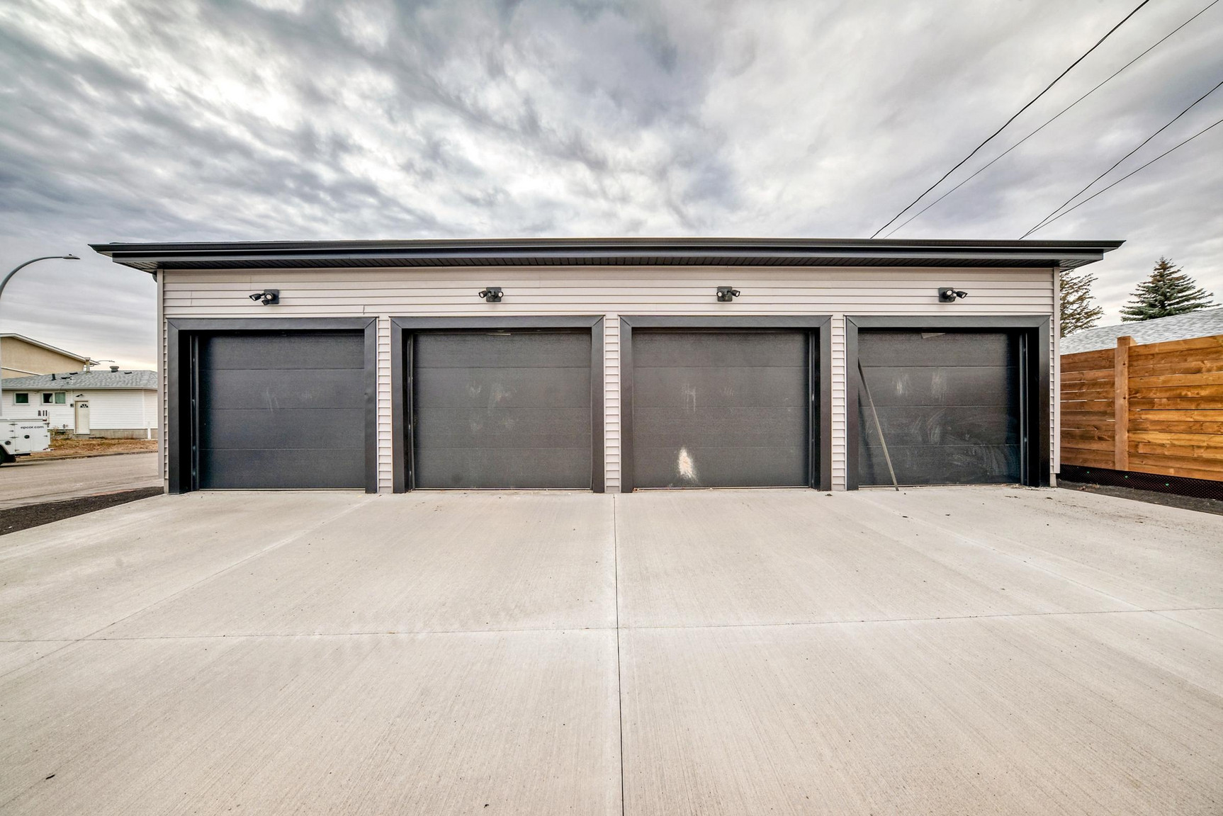 Single detached garage with parking pad available for $175/month. The garage fits one vehicle, and the parking pad accommodates an additional vehicle.